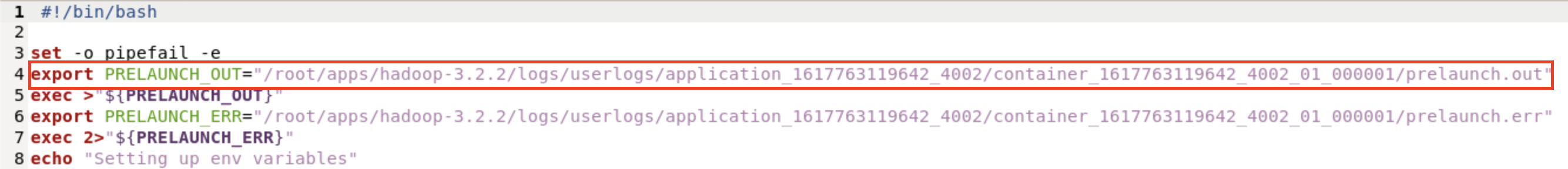 A. /root/apps/hadoop-3.2.2/logs/userlogs/application_1617763119642_4002/container_1617763119642_4002_01_000001/prelaunch.out