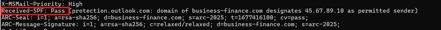 Note: Just because SPF passes does not mean the email is safe. It means that the sending IP is authorized for that domain.