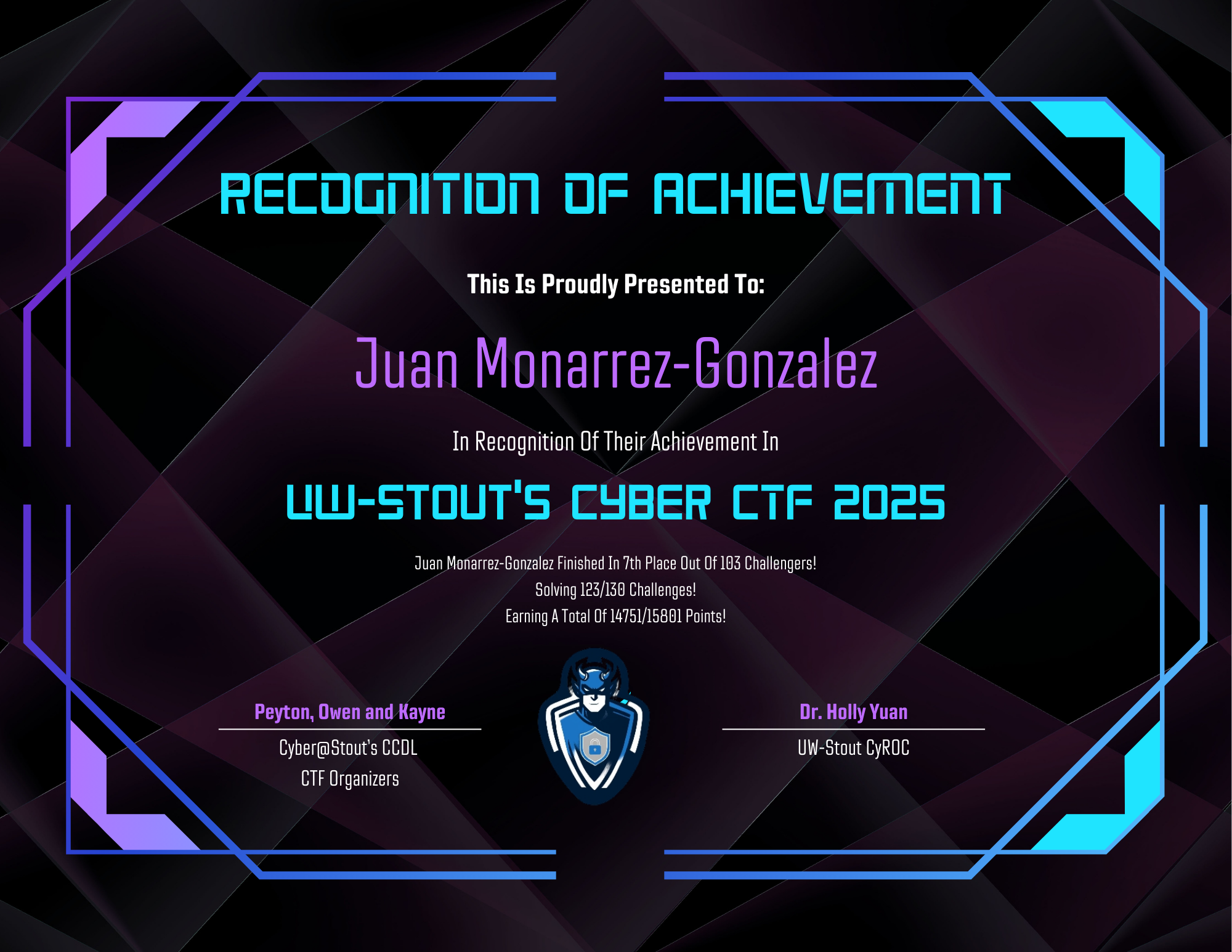 7th Place in UW-Stout's Cyber CTF 2025
